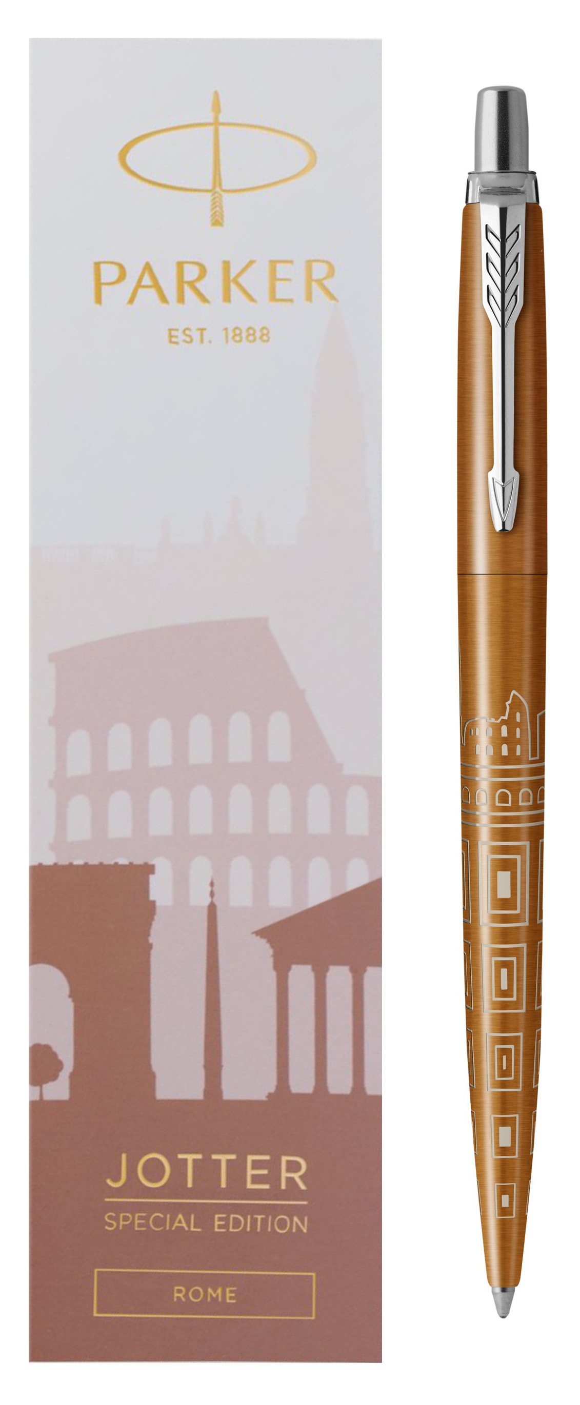 Ручка шариковая Parker Jotter Rome Bronze CT от официального дилера Parker в Пятигорске. Вы можете дополнительно заказать гравировку, которая подчеркнет Вашу оригинальность и придаст памятность статусному подарку. Все ручки Паркер поставляются в фирменном футляре.