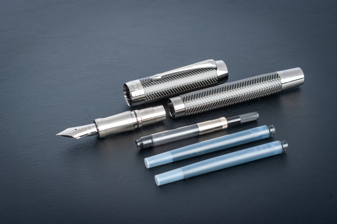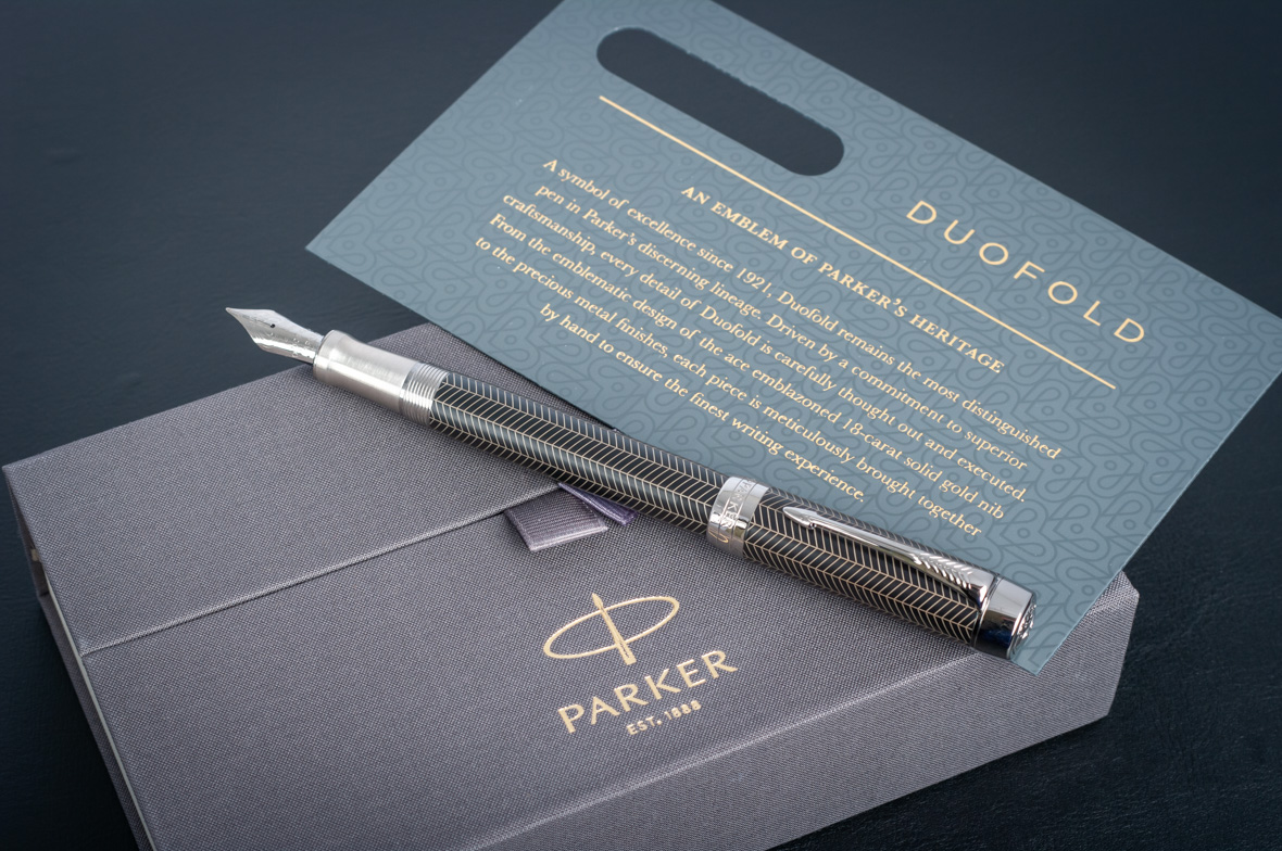 Перьевая ручка Parker Duofold Prestige Centennial Black Chevron CT от официального дилера Parker в Пятигорске. Вы можете дополнительно заказать гравировку, которая подчеркнет Вашу оригинальность и придаст памятность статусному подарку. Все ручки Паркер поставляются в фирменном футляре.